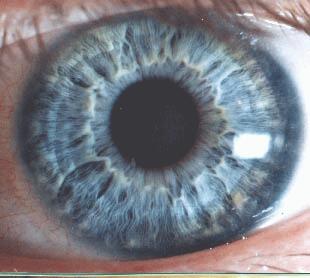 Blauwe, grijze of blauwgrijze iris met duidelijke zichtbare, meestal dikke vezels (radiaren) met kronkelend verloop.
